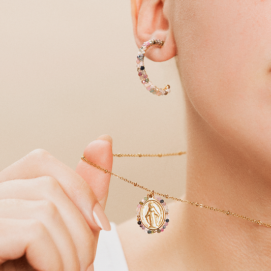 Collar Medalla Virgen de la Milagrosa Turmalina Gold